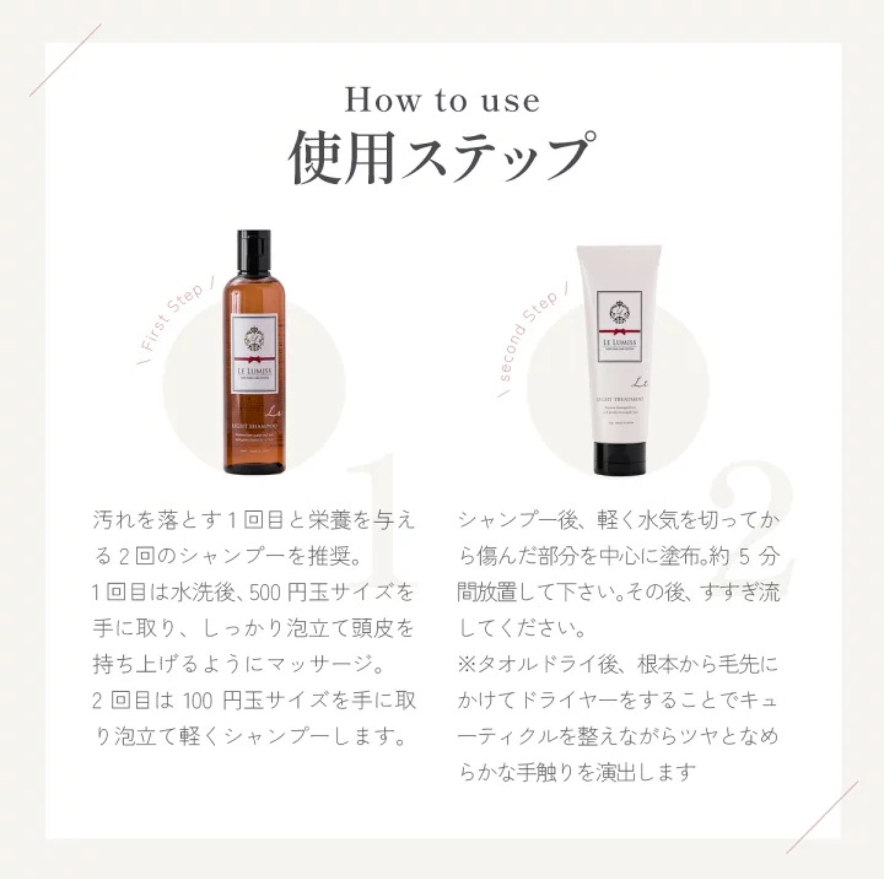 あなたの髪質にあわせて、レルミス(ライト・モイスチャー)シャンプー&トリートメントをお選びください。
